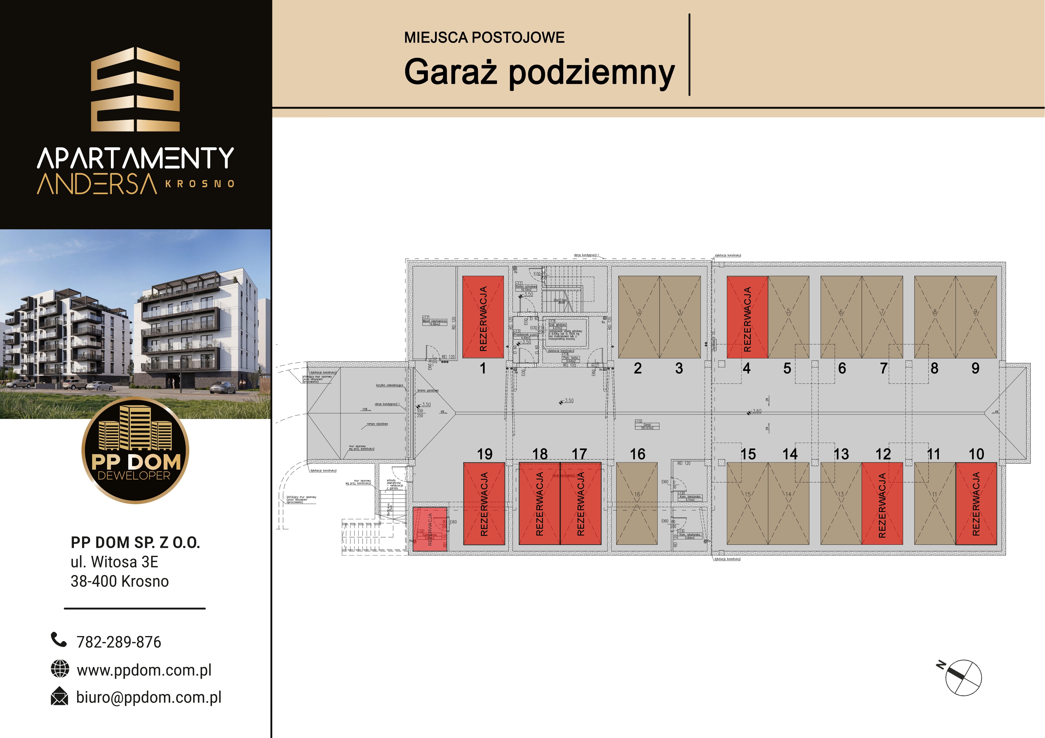 cena miejsca w garażu podziemnym – 45 000 zł, cena komórki lokatorskiej – 15 000zł